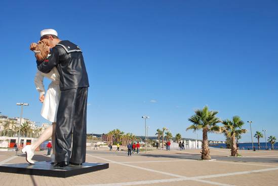 תמונה שצילם Alfred Eisenstaedt בכיכר טיימס בניו יורק. מלח בחיל הים האמריקאי שנישק נערה זרה בשמלה לבנה ביום הניצחון על יפן במלחמת העולם השנייה (V-J Day) ב14 אוגוסט 1945. הצילום פורסם שבוע לאחר מכן במגזין Life בגיליון מיוחד ל"חגיגות הניצחון" . הצילום הספונטני דקות אחרי הנאום של הנשיא טרומן שבישר על התבוסה היפנית. היות והצילום היה מהיר- אנונימי לחלוטין ,הצלם לא הספיק לקבל את הפרטים של המצולמים . לאורך השנים היו ניסיונות זיהוי של המלח והנערה (כנראה אחות) והיגדים על העדר רומנטיקה וסממנים של תקיפה וניצול מיני. המנושקת נפטרה לפני מספר שנים בגיל 92.