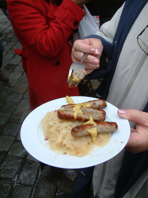 גאוותה של מינכן הוא Weisswurst- נקניקיית עגל שאוכלים עם בייגלה pretzel וחרדל מתקתק לצידה. לא לשכוח לקלף את השכבה החיצונית קודם.