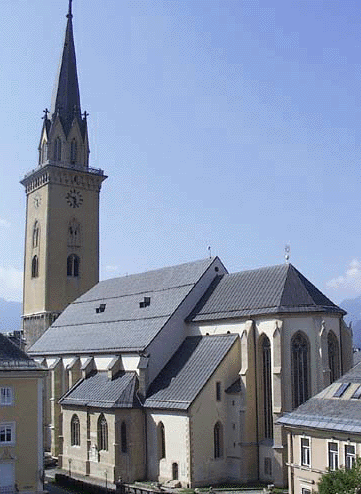 כנסיית סנט ג'קוב בולטת עם מגדל בגובה 94 מטר.