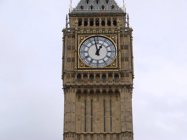 המגדל נבנה במאה ה-19 ,על מקומו של מגדל השעון של הארמון הישן. גובהו 96 מטר. בראש המגדל ארבעה לוחות, קוטר כל לוח 7 מטר והם מכוונים לארבע רוחות השמיים כמובן. הפעמון שוקל 13 טון ומופעל ידנית עד היום. השעון כל כך מדויק כך שלקח 117 שנה עד התקלה הראשונה. צלילי פעמון הביג בן היו אלו שפתחו את שידורי הביביסי במלחמת העולם השנייה, וכל מי שקלט את התחנה באירופה הכבושה, הצלילים היוו לגביו ליל של תקווה לעולם שפוי יותר .