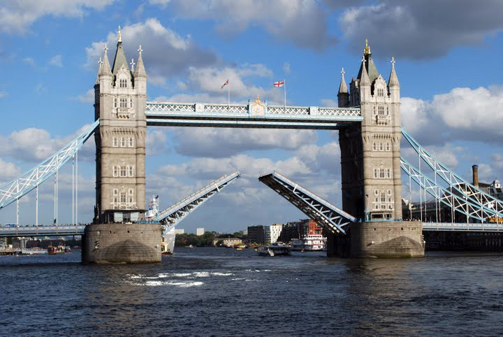 על הנהר תמזה שהינו גשר של כמה מפלסים, גשר עילי להלכי רגל ומתחתיו נוסעות מכוניות. כאשר ספינה עוברת התנועה עוצרת והגשר מורם. הגשר הוקם בשלהי המאה ה19 ואורכו כ800 מטר. הוא נבנה בסגנון ניאו גותי כדי שישתלב עם המצודה שברקע,משני צידיו מגדלי הגשר,אשר בתוכם מוזיאון.