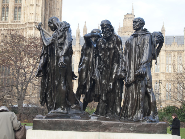 נמצא בגינה סמוכה לבית הפרלמנט. הפסל עוצב על ידי הפסל אוגוסט רודן,הפסל מתאר את ששת אזרחי העיר קאלה הנמצאת בנורמנדי,כאשר האנגלים שהיו אויביהם המושבעים של הצרפתים,כבשו את העיר,בזמן מלחמת מאה השנים בין אנגליה וצרפת. ששה מנכבדי העיר הגישו לכובשים האנגלים את מפתחות העיר. כמה שזה אבסורדי, הפסל הוא מתנה של הצרפתים לאנגלים,איך שההיסטוריה מתהפכת.