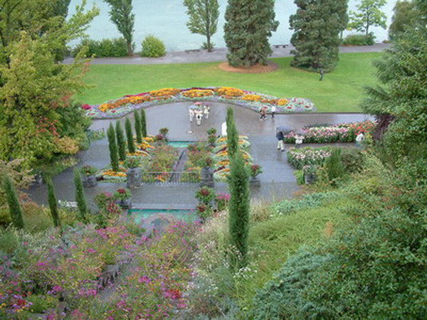 פסלי צמחים מעוצבים כבעלי חיים (טווסים, ברבורים).