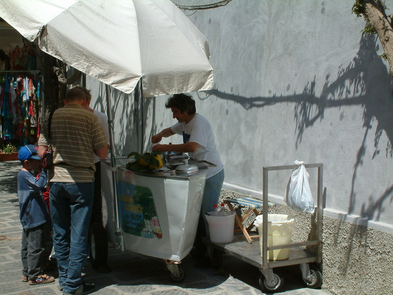 ליד אחת החנויות נתקלנו ברוכלת קשישה שמוכרת מעין קרח מרוסק בטעם לימון חמוץ מתוק- לא יודעת מה זה היה, לא גלידה, ולא לימונצ'לו קפוא. אבל אם תראו אותה מוכרת- קנו, מרענן וטעים.