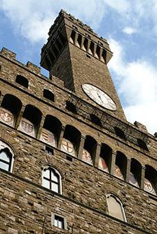 הבניין נבנה כדי לשכן את הסיניוריה, מועצת השליטים של העיר. כאשר קוזימו הזקן התאהב במקום הפך אותו משך עשר שנים לארמונו הפרטי. כאשר עבר מכאן אל ארמון פיטי, המבנה הנ"ל קיבל את השם "הארמון הישן" ווקיו-ישן. כאן ישבה ממשלת איטליה ובית המלוכה ב1860-1870, פעם בחודש היו יוצאים פקידי הממשלה למרפסת ומוסרים דיווח פומבי לעם על פועלם. מרבית החדרים פתוחים לביקור הקהל.