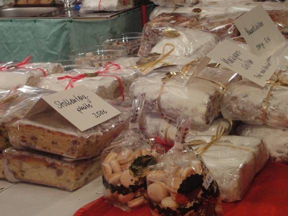 אחת העוגות או בעצם לחם מתוק - weihnachtsstolen (לחם חג המולד) או בגרסאות אחרות "לחם חורף" או "לחם ישו" או בקיצור שטולן. אחיו החורג של הפנטונה Panettone האיטלקי או Pandoro והסיפור של המלחמה ביניהן על הכבוד האיטלקי. כולן בכל מקרה סוג של לחם מתוק המכיל פירות יבשים, אגוזים, צימוקים ומעטפת עבה של אבקת סוכר שתזכיר את השלג אולי. משקלה של כיכר שטולן דומה למשקלו של תינוק גדול בלידה (בין 3.5-4.5 ק"ג).