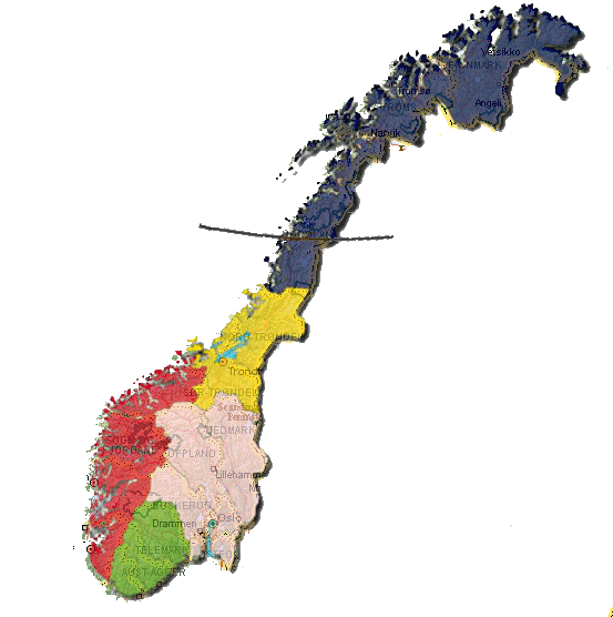 כל המחוזות הנמצאים דרומית לקו אוסלו-ברגן. בד"כ מבוקרים במהלך מעבר לדנמרק ,או