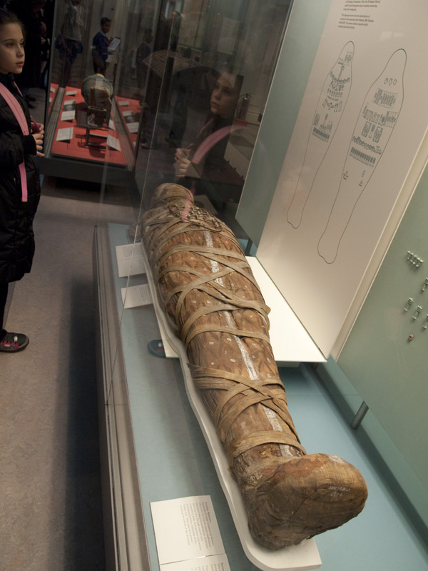 • המומיות- בקומה הראשונה, אלו הן "הלהיט" של המוזיאון המצרים חנטו את הגופות שלהם, ושל חיותיהם כדי שיהיה אפשר להשתמש בהן לאחר המוות, מתוך אמונתם בעולם הבא. הארונות בהן הגופות היו מונחות נקראים סרקופגים, ובתוכם אפשר לראות כל מיני עיצות שיעזרו למומיה כאשר היא תקום לתחייה.